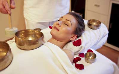 Em média 70% do nosso corpo é composto por água, que é um grande condutor de vibração sonora, ao tocar a taça tibetana sobre o corpo, que está vestido, suas vibrações percorrem todos órgãos, células, tecidos restaurando o equilíbrio, mobilizando e fortalecendo a energia vital.